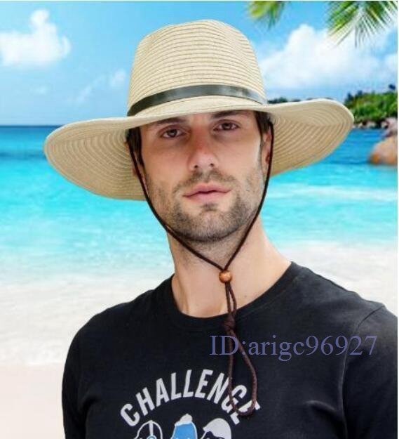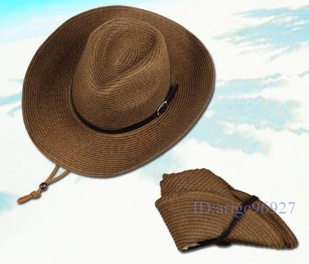 S574☆新品メンズ 麦わら帽子 中折れハット ストローハット 紫外線対策 UVカット 農作業 折りたたみ可能 ベージュ
