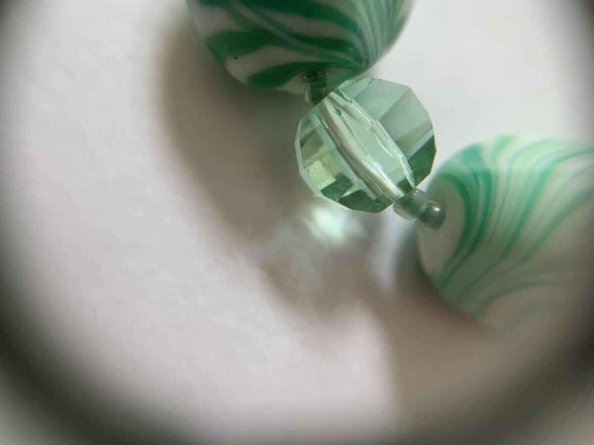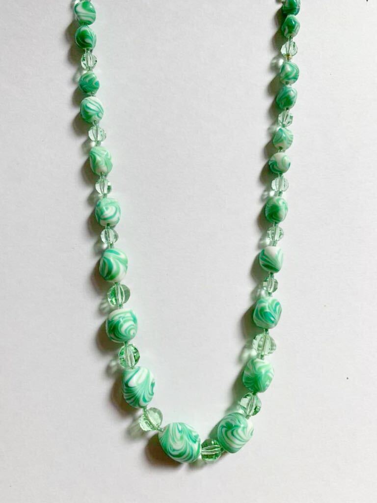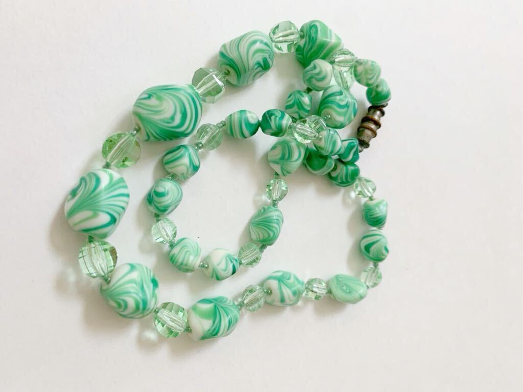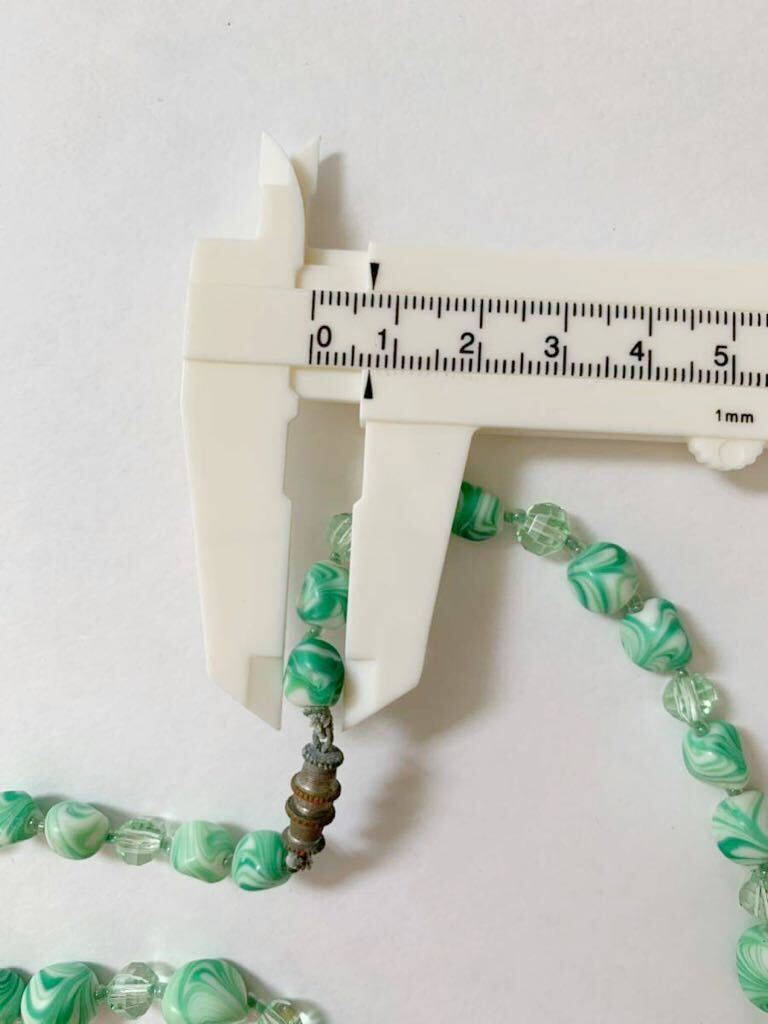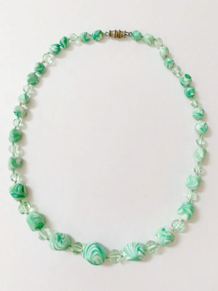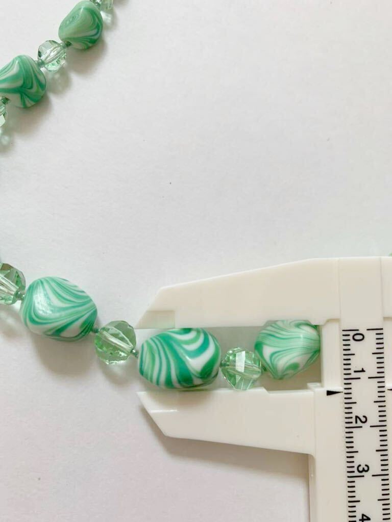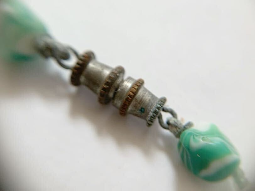【希少】ヴィンテージ グリーン マーブルガラス ネックレス ヴェネチアンガラス レア レトロ トンボ玉 コスチュームジュエリー 舞台