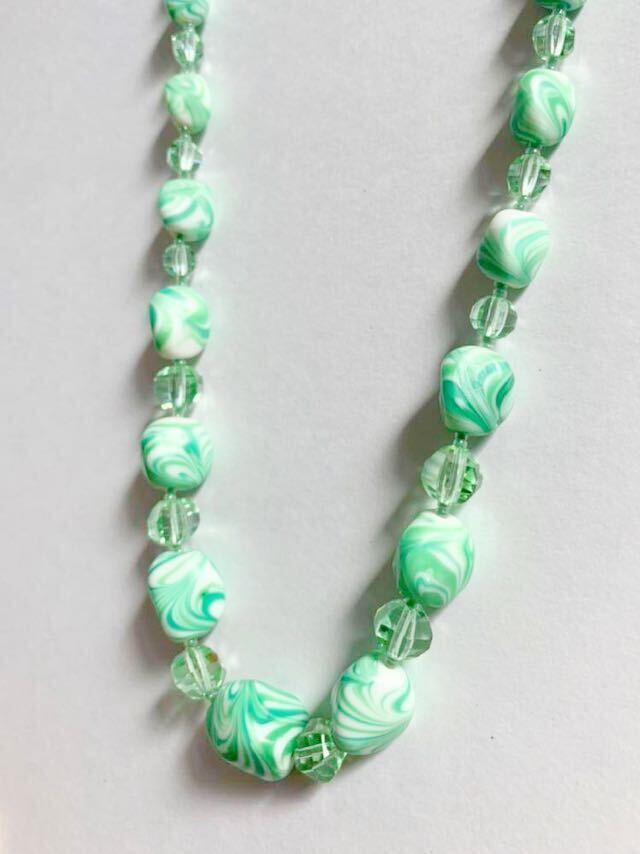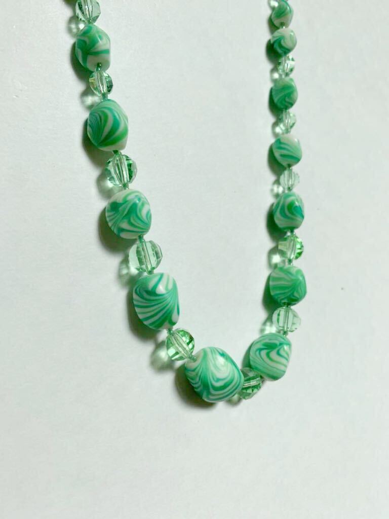 鮮やかなグリーンのマーブル模様が可愛らしいネックレスのご紹介です。