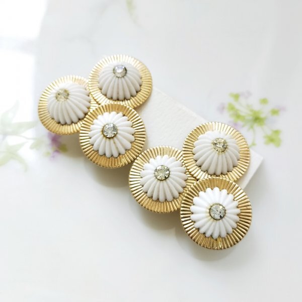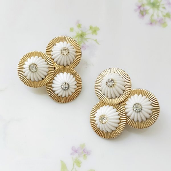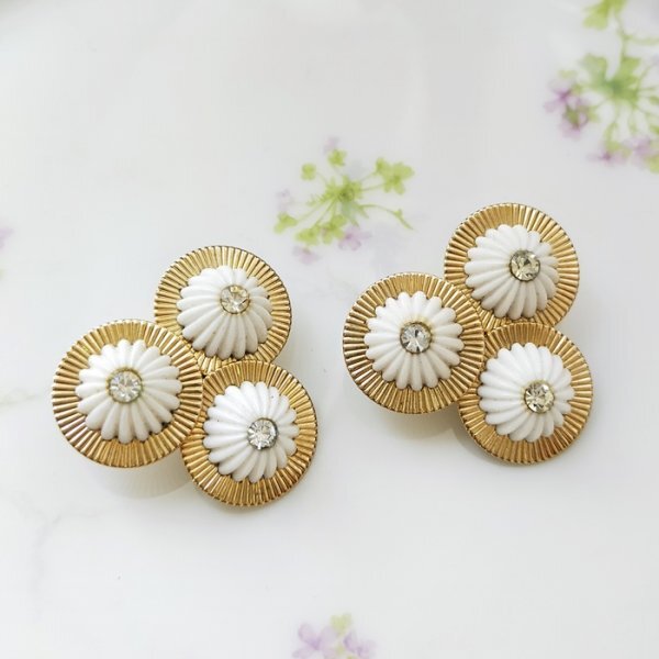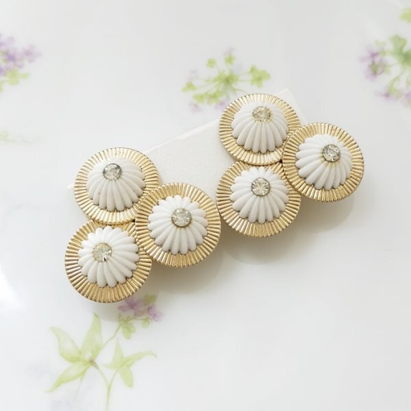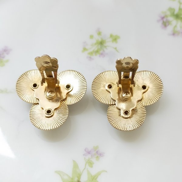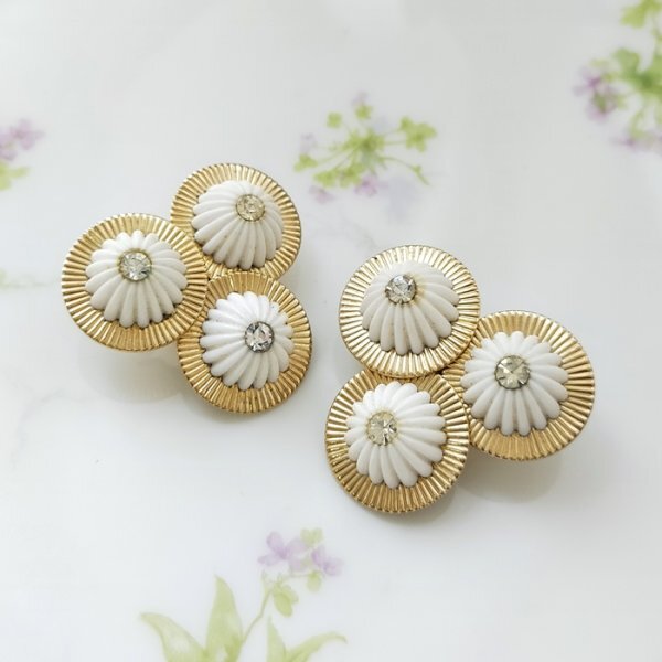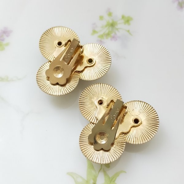 ホワイトカボションのイヤリングです。 カボションの中心にはクリアラインストーンがセットされていて、きらめいています。 クリップオンタイプのイヤリングです。 経年の為、多少の小キズが見られます。 ラインストーンの接着部分付近に接着剤が付着し、茶色く変色している箇所があります。 ■ブランド: CORO ■刻印: Coro ■年代(推定): 1950-60年代頃 ■輸入国: アメリカ ■サイズ: 約3.4cm x 約3.2cm ■重量: 約7g(片方) アンティーク・ヴィンテージ商品には、経年による傷や劣化などがあります。 目立つものはアイテムの詳細に記載しておりますが、説明以外にもキズや損傷などがある場合がございます。 古いものですので、ご理解いただける方のみご入札下さいませ。 他サイトでも販売しておりますので、同時にご注文があった場合は、品切れの場合もあります。その場合は、大変申し訳ございませんが、ご注文をキャンセルとさせて頂きます事をご了承くださいます様お願いいたします。 | |||