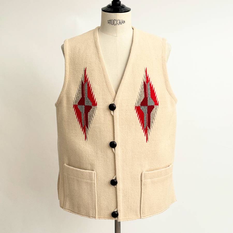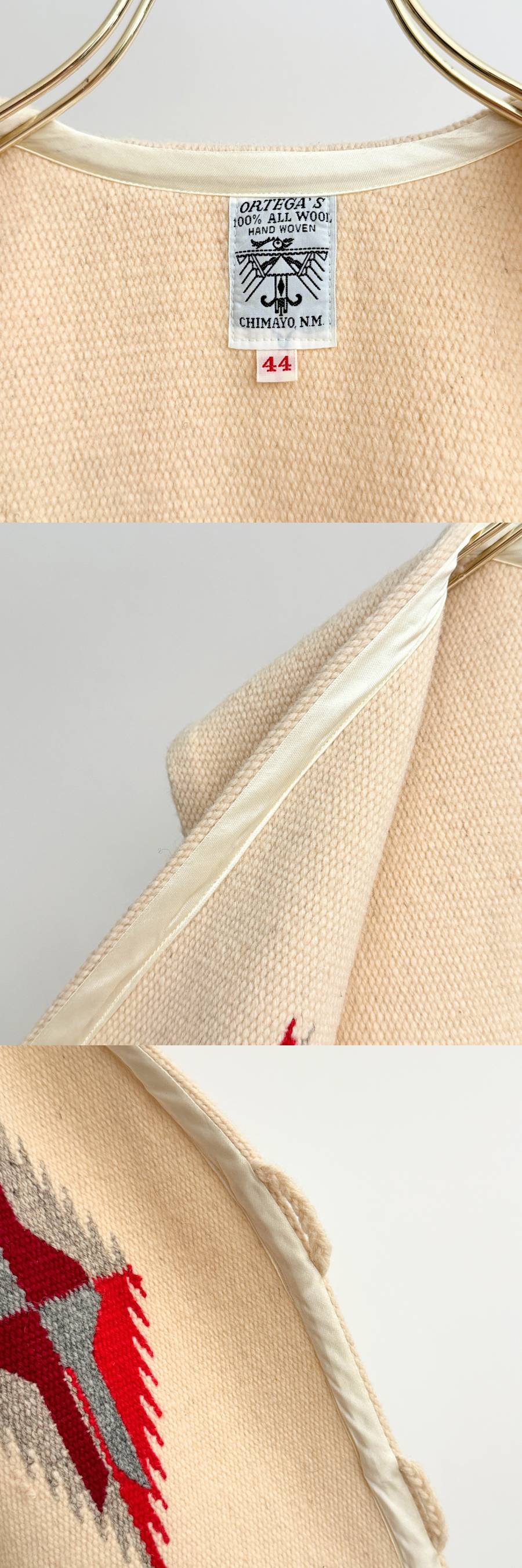 希少《 Old Model / ORTEGA'S / Size 44 》70s 80s 美品【 ビンテージ オルテガ アイボリー チマヨ ベスト ビッグサイズ 生成り 白 】