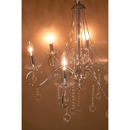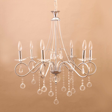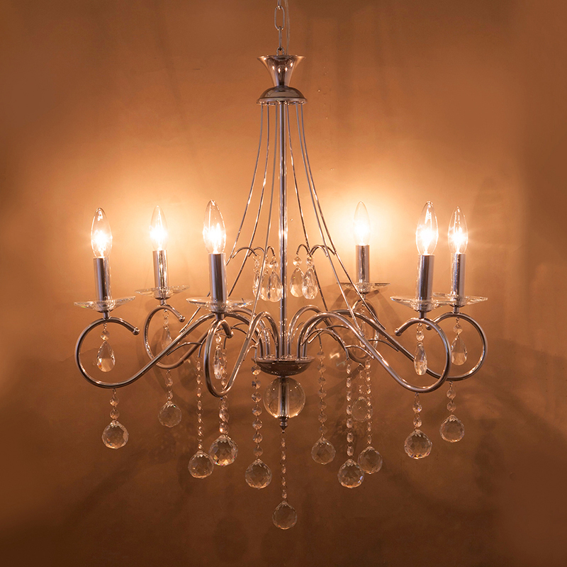 シャンデリア 6灯 led 照明 天井 吊下げ シルバー クリスタル ガラス おしゃれ 北欧 ガーリー ヨーロピアン 高級感 姫系 スタイリッシュ
