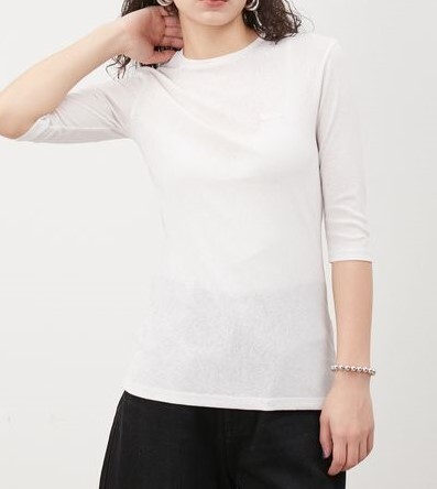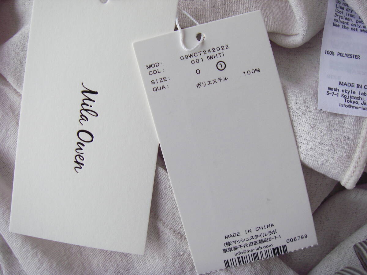 新品mila owen 7分袖クルーネックシアートップス WHT