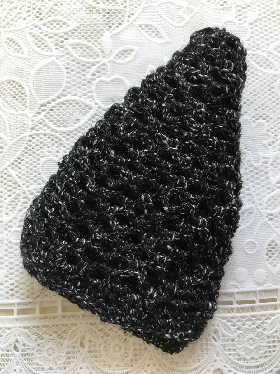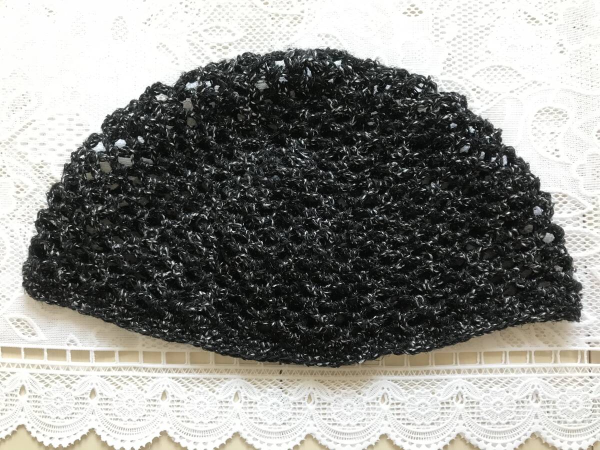 即決/ハンドメイド 手編み 伸縮性通気よい 透かし編み メッシュ 綿麻 大きめ/杢黒/ニットインナー帽子/ビーニー イスラム帽/アウトドア