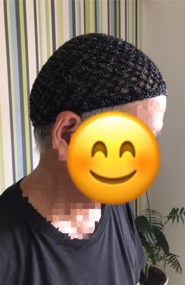オリジナルの編み方で伸縮性あり、締め付けず、軽くて通気性もよい、夏でも快適に被れます。ヘルメットなどの下にインナーとして最適です。