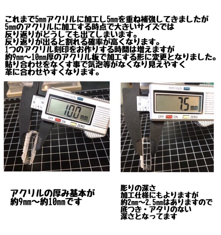 全て手元にあるアクリル刻印のみを出品致しますが、仕事の都合で発送までに2~3日ちょうだいしております。