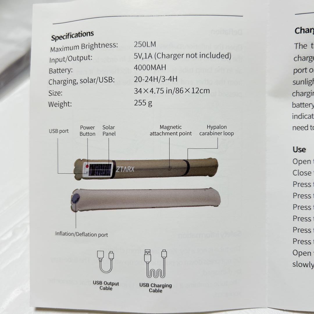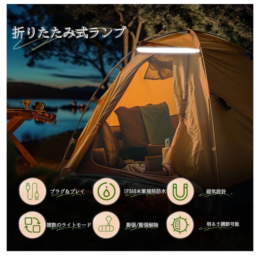【折りたたむことができ、持ち運びが簡単】このキャンプ用ランタンは、柔軟性のあるLEDライトストリップを使用しており、折りたたみや収納が非常に便利です。バッグランプは折りたたむと手のひらサイズになりますので、バッグに入れるかポケットに入れるかどちらでも使いやすいです。防水性のある収納袋が付属しており、アウトドアランタンを完璧に収納することができます。このLEDランタンの全長は86cmで、充填後の厚さは8cmです。
