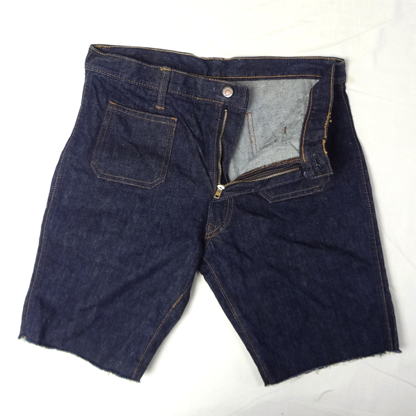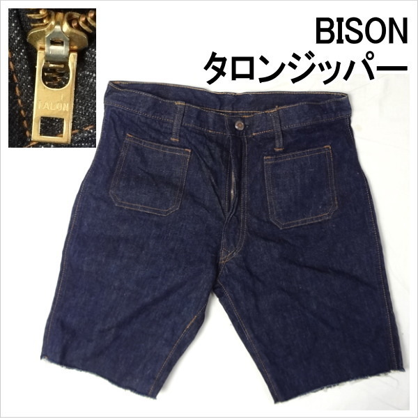 バイソンBISONの70年代製タロンジッパーデニムショートパンツ、店頭展示品を一度洗濯しただけの未使用品、綿100%、ハーフパンツ
