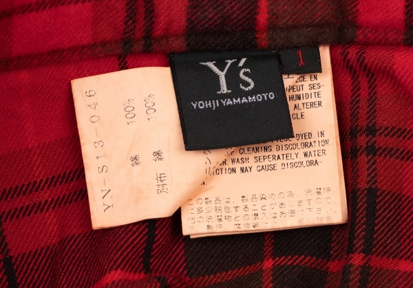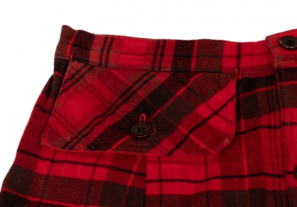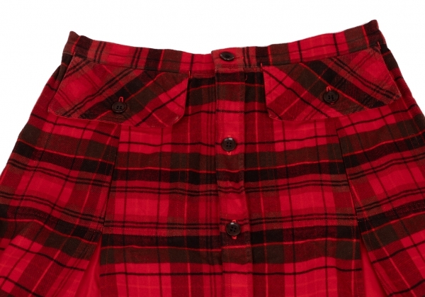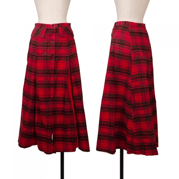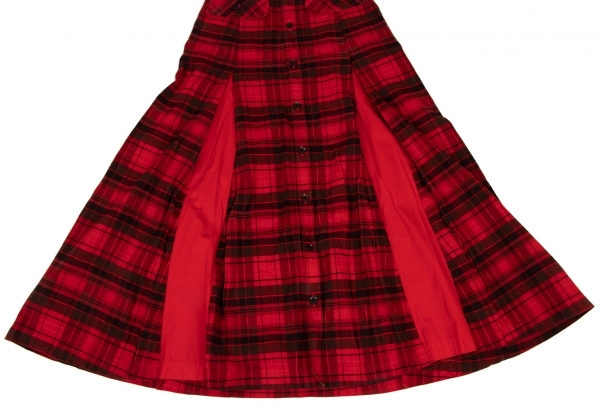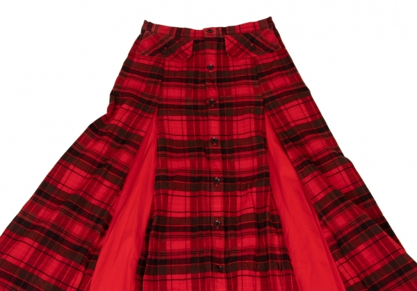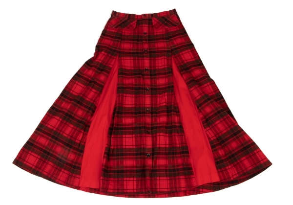 | ワイズY's 製品染めタータンチェック切替デザインボタン開きスカート 赤黒1 |