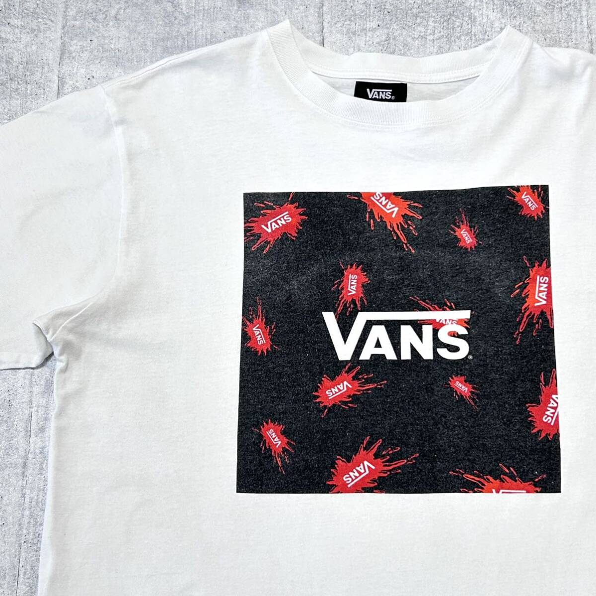 VANS センターロゴ ボックス ホワイト Tシャツ 半袖 ヴァンズ バンズ  Lサイズ クルーネック スケーター スケート ストリート 石瀬6086