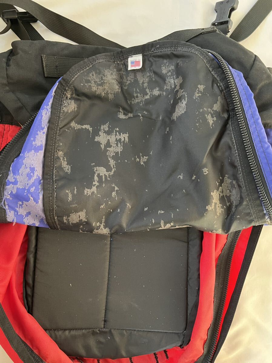 デイパックは紫タグからの移行直後の個体となり、角バックルでバッグメインルームの表面の内側が紫タグ仕様となり、過渡期の希少な個体となります。