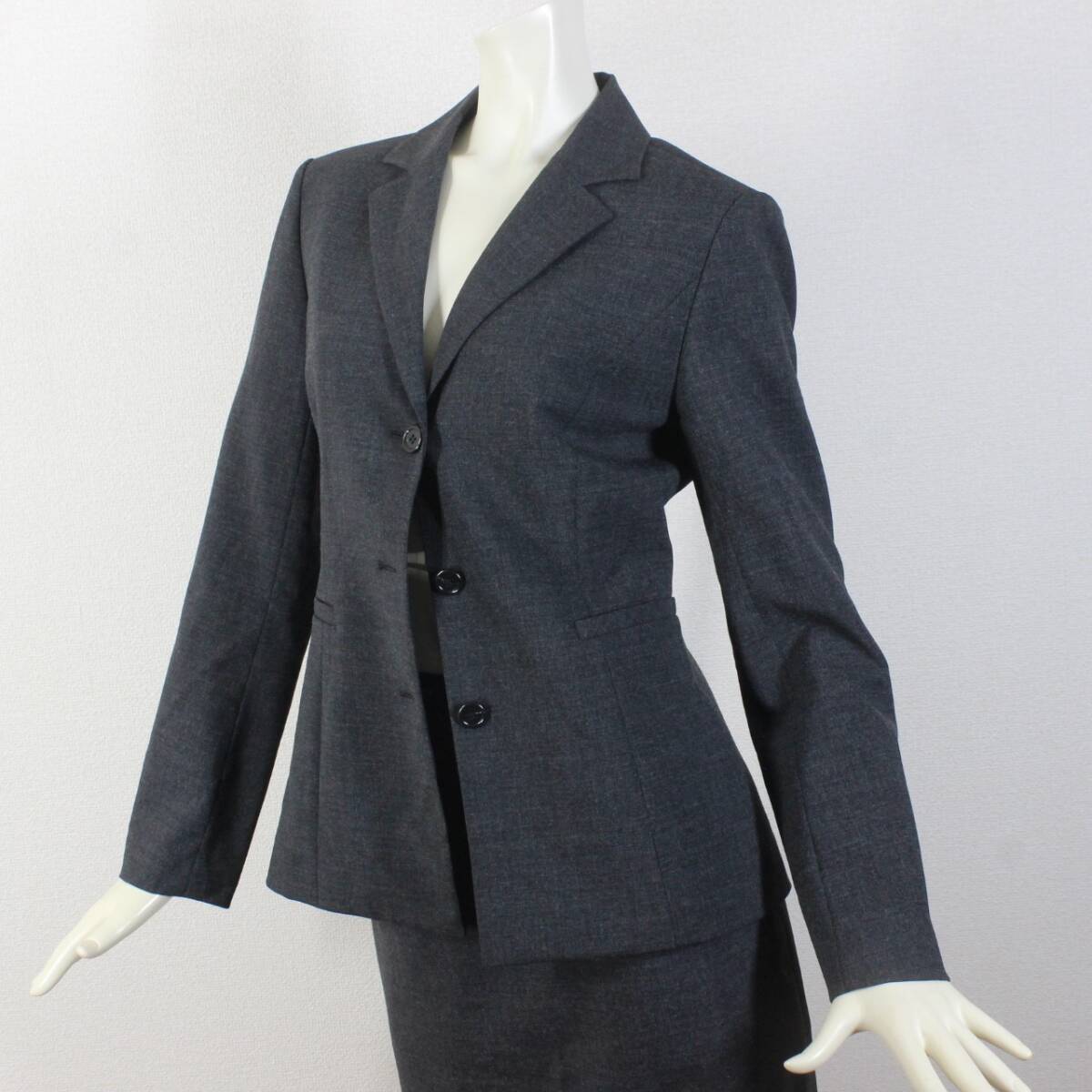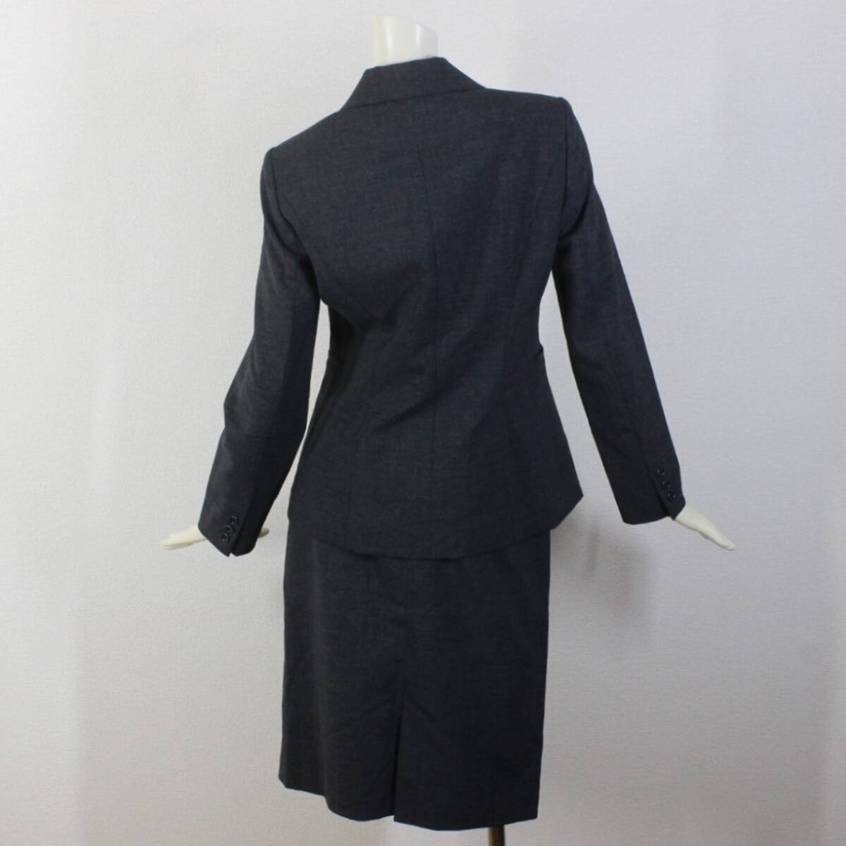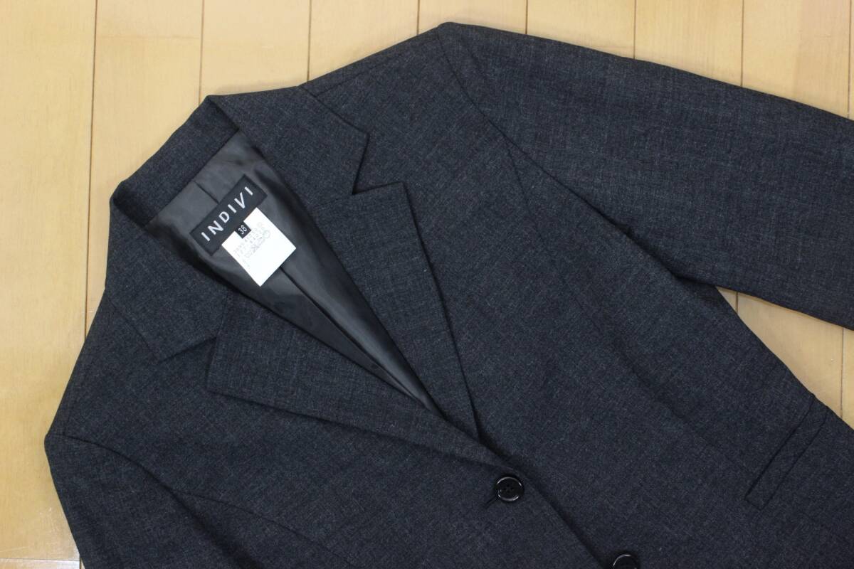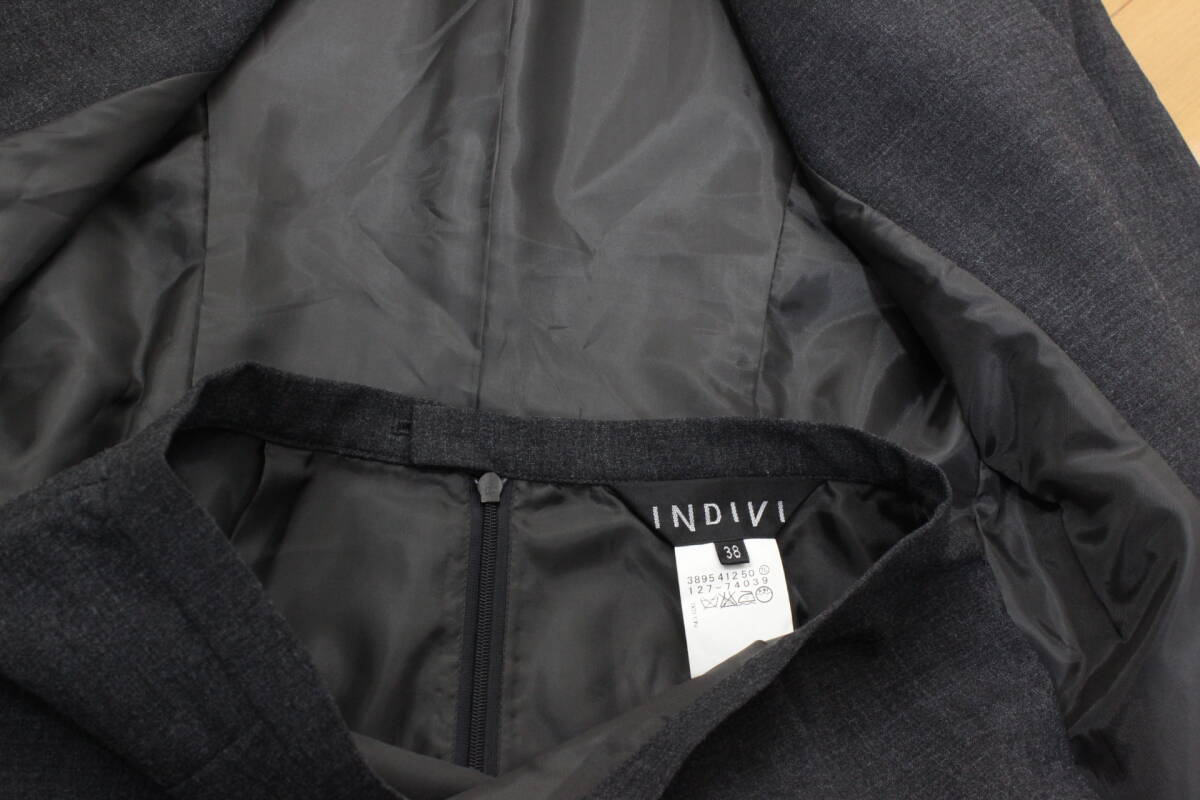 19【極美品】インディヴィ スカートスーツ 38 M グレー 面接 ビジネス 就活 tqe INDIVI 秋冬春 ★極美品★送料無料★