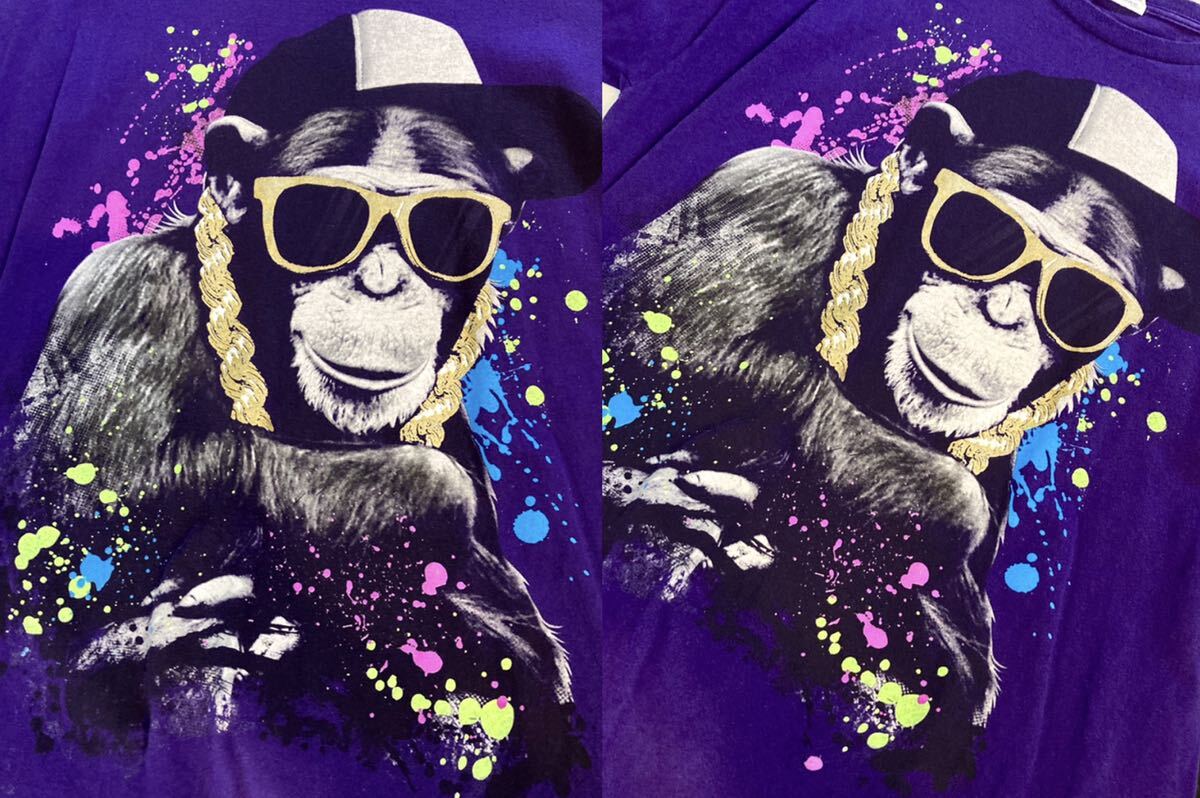 アニマルプリントが入ったパープルカラーのTシャツで、カラフルでアイコニックなデザインになっています★