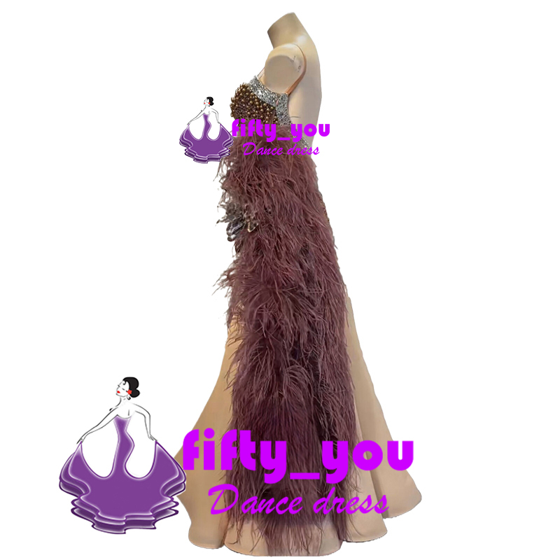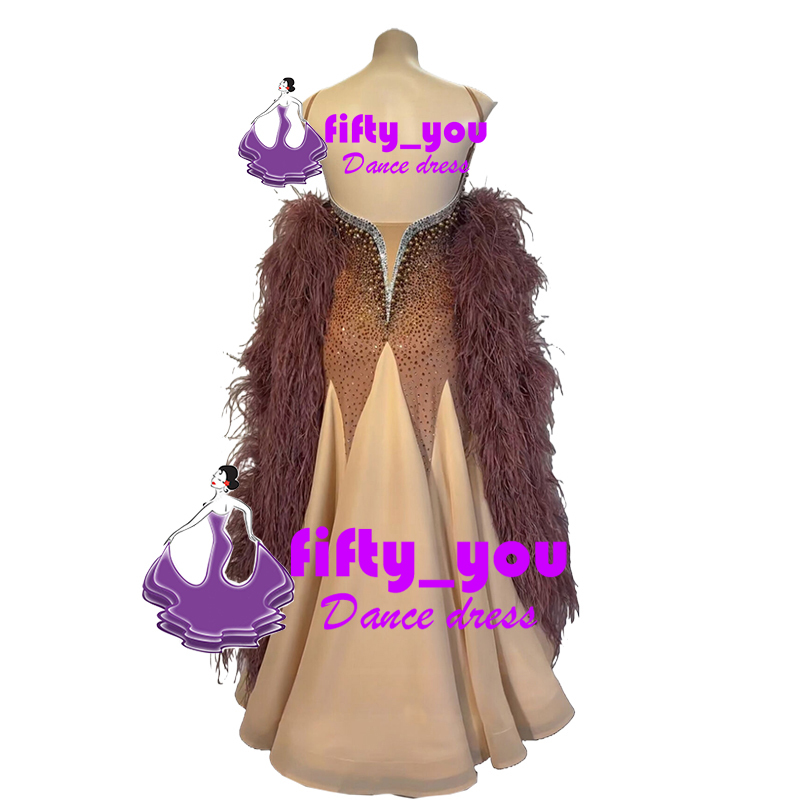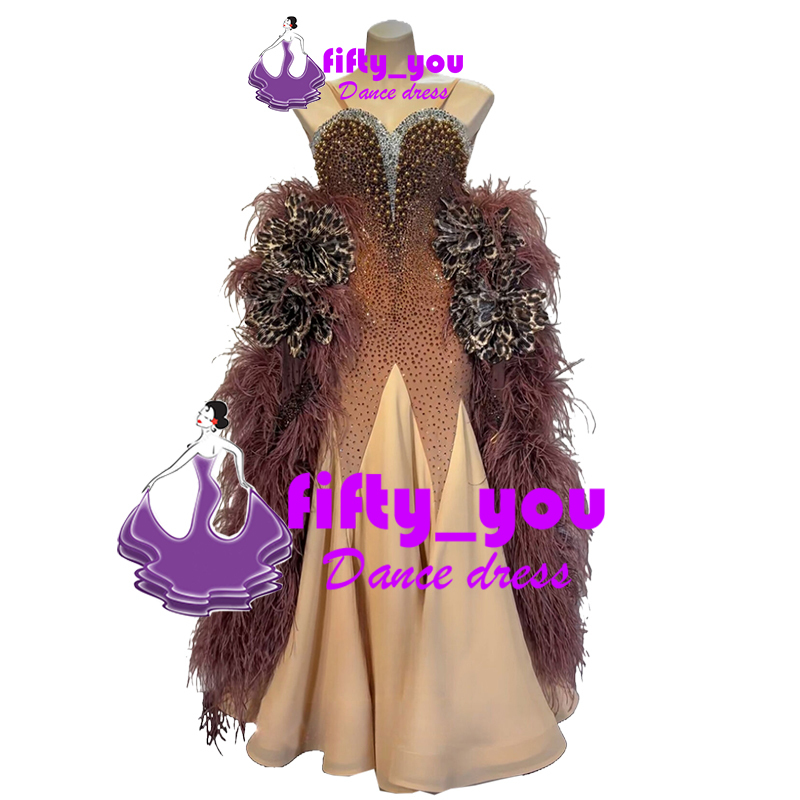 新品fifty_youレディース社交ダンス衣装 サイズセミオーダー モダン競技試合デモ用ドレス  ボリュームファーフロート スタンダードドレス