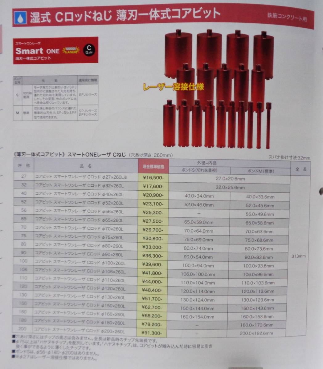 標準コアビット呼径 : 14.5~120mm