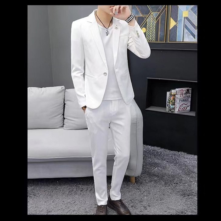 カジュアルスーツ メンズ セットアップ サマースーツ おしゃれ サマージャケット テーラード 長袖 ホワイト☆M~3XLサイズ選択/1点