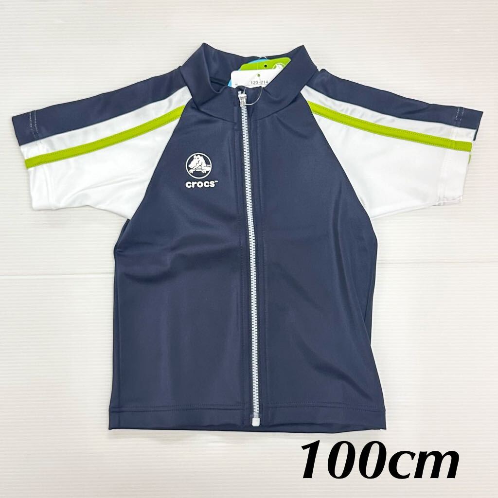 新品63132 クロックス crocs 100cm ネイビー紺  ジップアップ半袖ラッシュガード キッズ 子供 日焼け防止 海プール