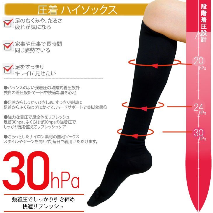 足首30hpa、ふくらはぎ20hpaの強着圧で