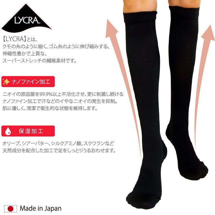 ★圧着 ハイソックス レディース 日本製 LYCRA ストレッチ M 23cm-25cm 黒