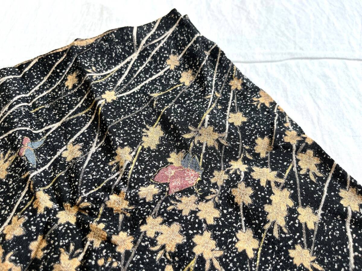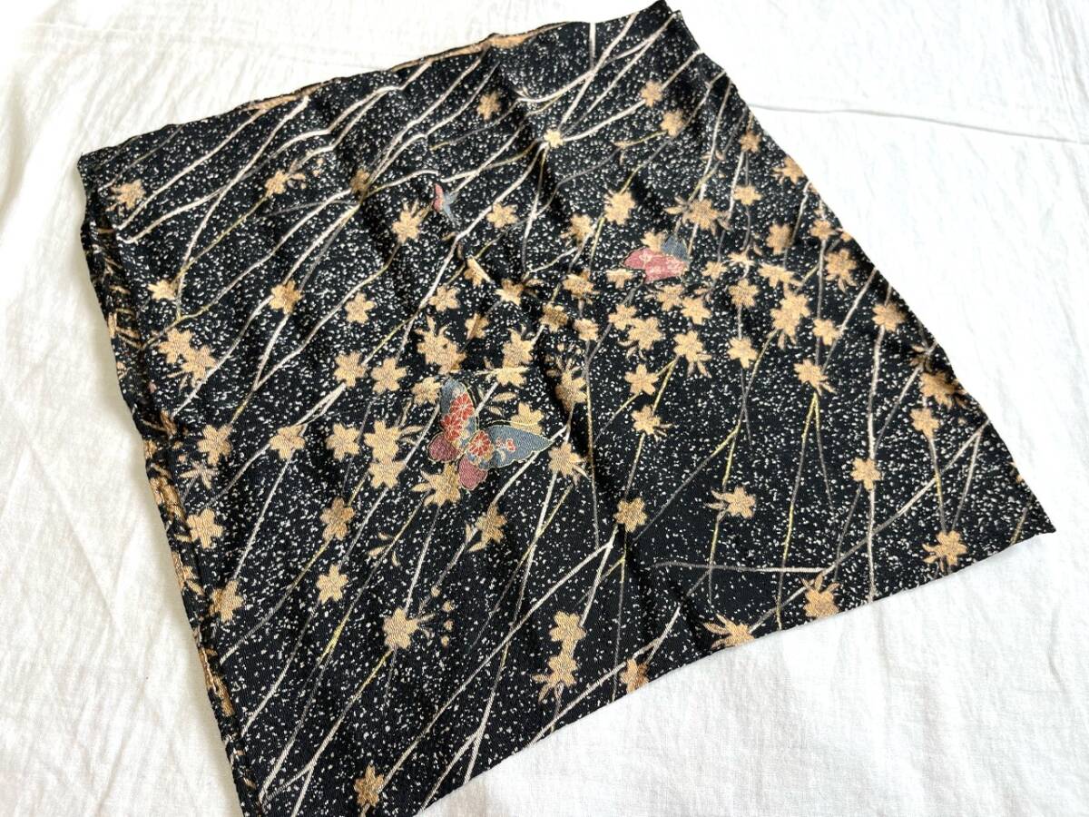 0003★風呂敷*ちりめん*黒*蝶*桜*柄*65cm×65cm*包み*布*和風*着物*和装小物*和服*レトロ*アンティーク*レディース*お得★