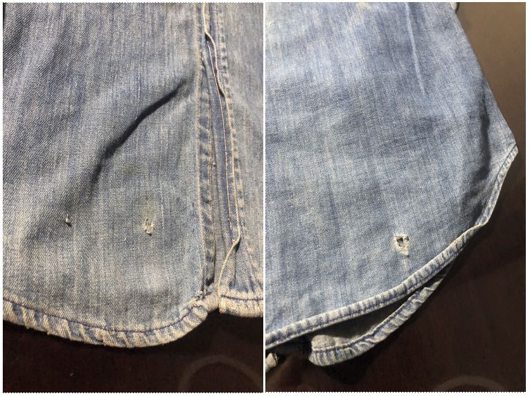 やや縦落ちしていて古着のデニムシャツとして雰囲気出ています。