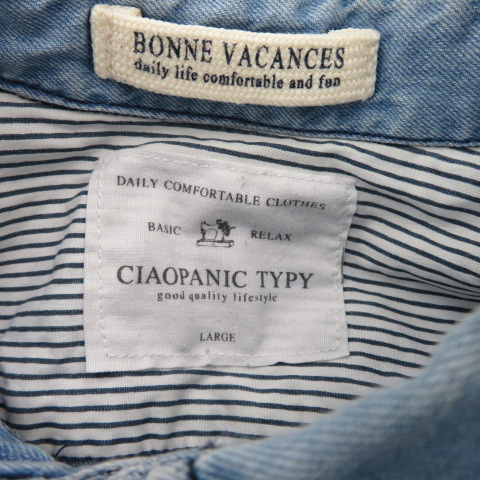 チャオパニック ティピー CIAOPANIC TYPY カジュアルシャツ シャンブレーシャツ 七分袖 L ライトブルー /YK33 メンズ