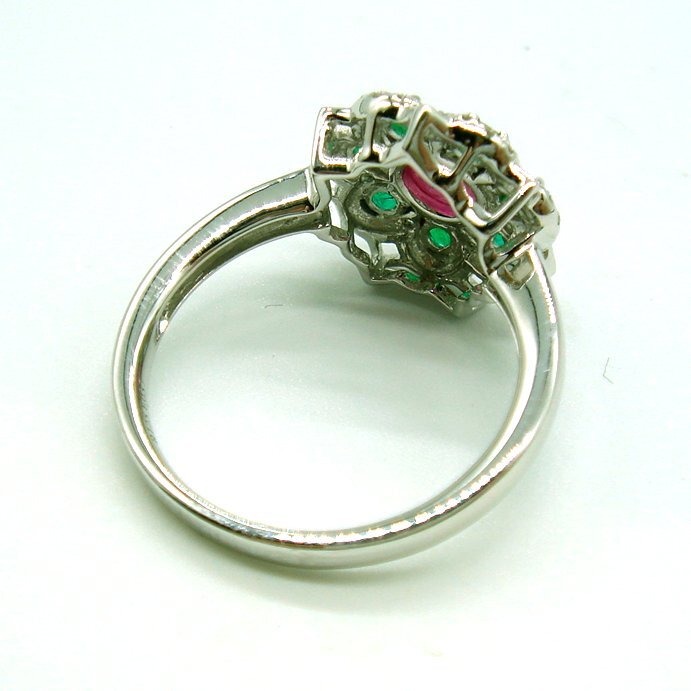 R943:K18WG ルビー エメラルド ダイヤ リング(#13.5)