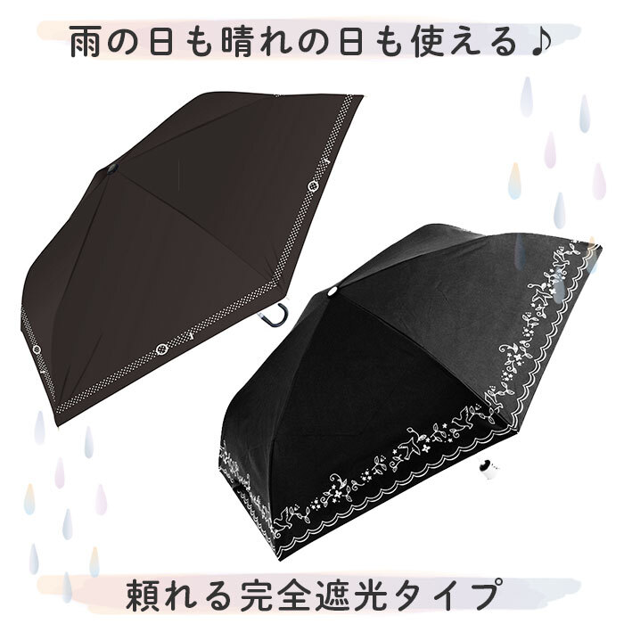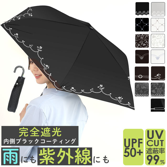 商品説明 | ・・雨の日も晴れの日も使える♪晴雨兼用の折りたたみ傘。(親骨50cmタイプ) ・傘生地の内側にはブラックコーティング加工を施し、UPF50+、UV99.9%以上カットの完全遮光タイプ! ・親骨の一部に弾力性があり折れにくいグラスファイバー素材を使用。さらに黒い塗装を施した黒骨を使用しているから、サビにくい◎ ・開閉時に爪や指を挟むのを防止するはじきカバー付き。 ・傘生地をまとめるバンドは、サッと留められて便利な面ファスナー式。 ・持ち手は丸タイプと曲がりタイプの2タイプあり、お好みに合わせて選べるのが嬉しい。(※カラーにより持ち手の色が異なります。) ・上品な印象を演出してくれるデザインをラインナップ。フォーマルシーンでも活躍。 |