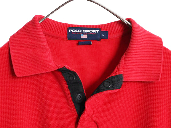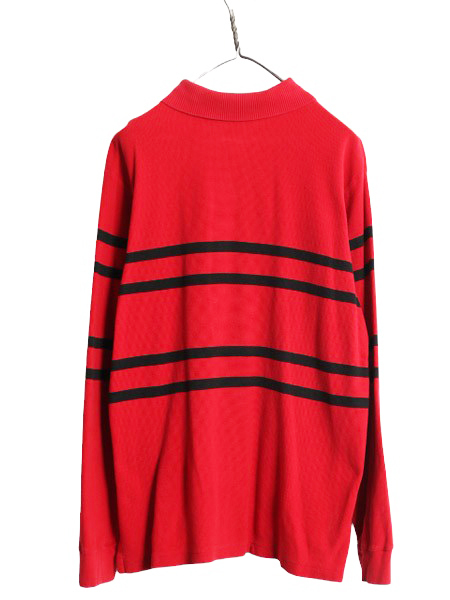 90年代のオールド 当時物 人気ブランド POLO SPORT RALPH LAURENの 長袖ポロシャツ です。 素材は、100% COTTON ( コットン 鹿の子 ) ラルフローレン定番のポロシャツ素材 通気性の良い、着心地抜群の素材が使用されています。 フロントは、スナップボタン留め 存在感のある好配色 レッド × ブラック の2トーン ボーダー 左胸にワンポイントのロゴ刺繍 動きやすさを提供するサイドにスリット入り ゆったりとした人気のシルエット スポーティーなオールド ポロスポーツのグッドデザイン これだけで様になる、長く愛用できる商品です。 |