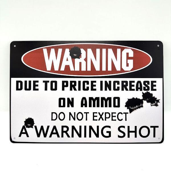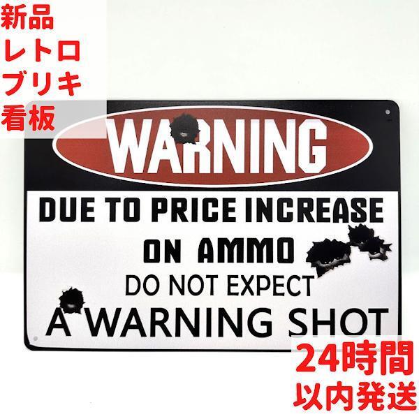 このブリキ看板は、「WARNING AMMO」のデザインが特徴です。