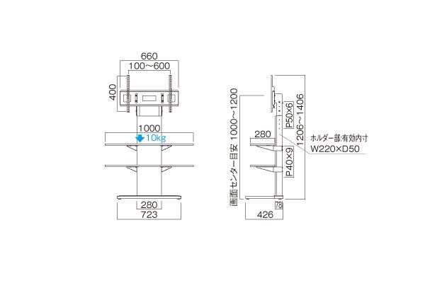 ●外形寸法:幅 1000 × 奥行き 426 × 高さ 1206 (mm)質量:約27.5kg