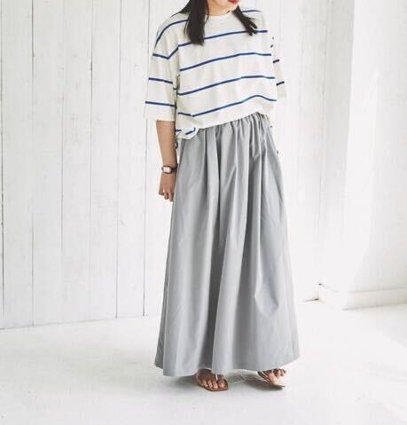 素材洗濯しても乾きやすい素材なので梅雨時期などにも便利です。ボリューム感がありながらも、軽やかで動くたびに空気を含んでふんわりとするので、カジュアルながらもフェミニンで程良い抜け感を演出します。