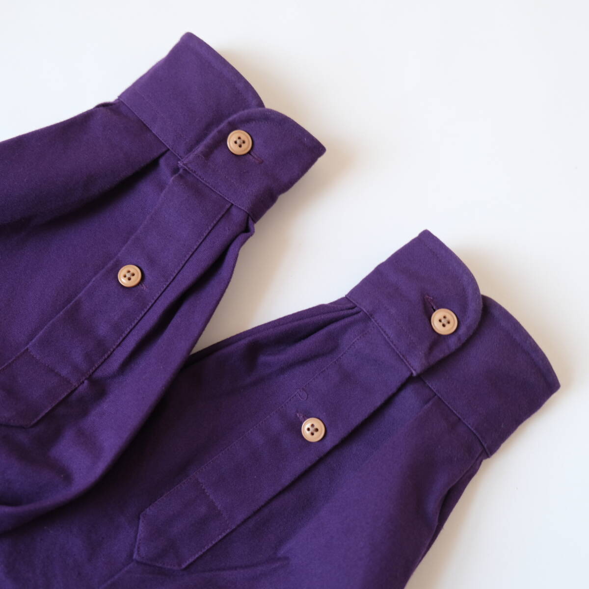 古いワークシャツに見られるストラップや小ポケット、背面のプリーツ等