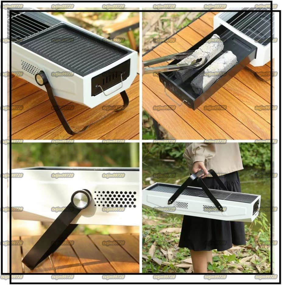 【使用便利】引き出し式炭ボックス、側面から引き出し、炭の入れと取り出しがとても簡単。折り畳み設計、コンパクトで持ち運びに便利、軽量で折りたたみ可能;