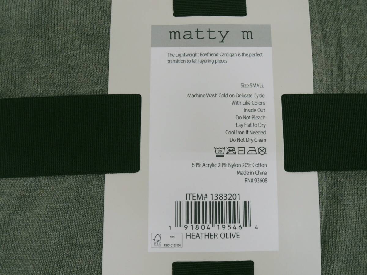 H-036-2 新品 matty m BF カーディガン レディース 薄手 【S】 グレー | |||