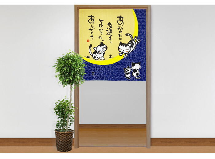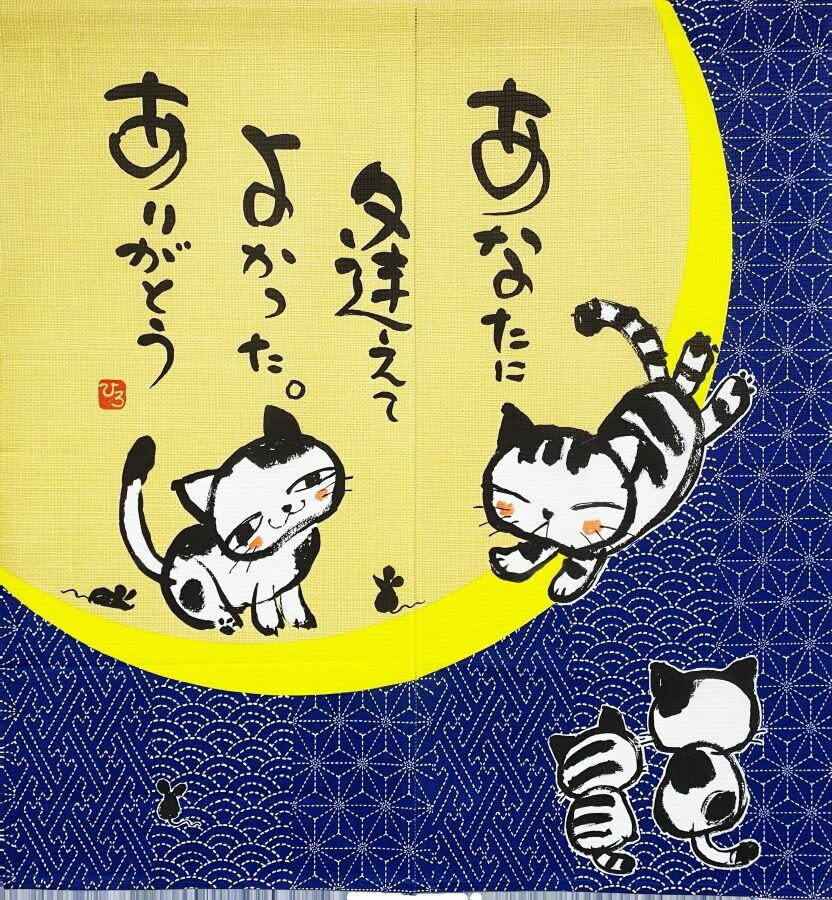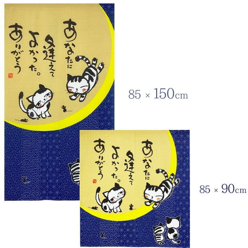 [人気商品]【猫のれん】あなたに逢えてよかった。ありがとうブルー幅85x丈90cm-niil-11355600S1