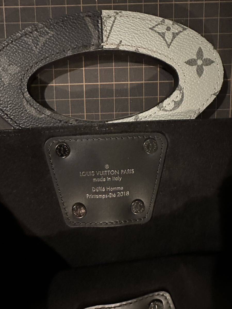 【説明】ルイ ヴィトン モノグラム エクリプス スプリット トートバックになります。2018春夏コレクションのファッションショーで発表され、モノグラム・エクリプス キャンバスを使用し、煌めくシルバーカラーが半分施されています。