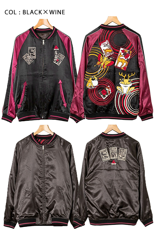 | 「花札猪鹿蝶」総刺繍リバーシブルスカジャン◆参丸一 SMI-M00783 | ||||||||||||||||||||