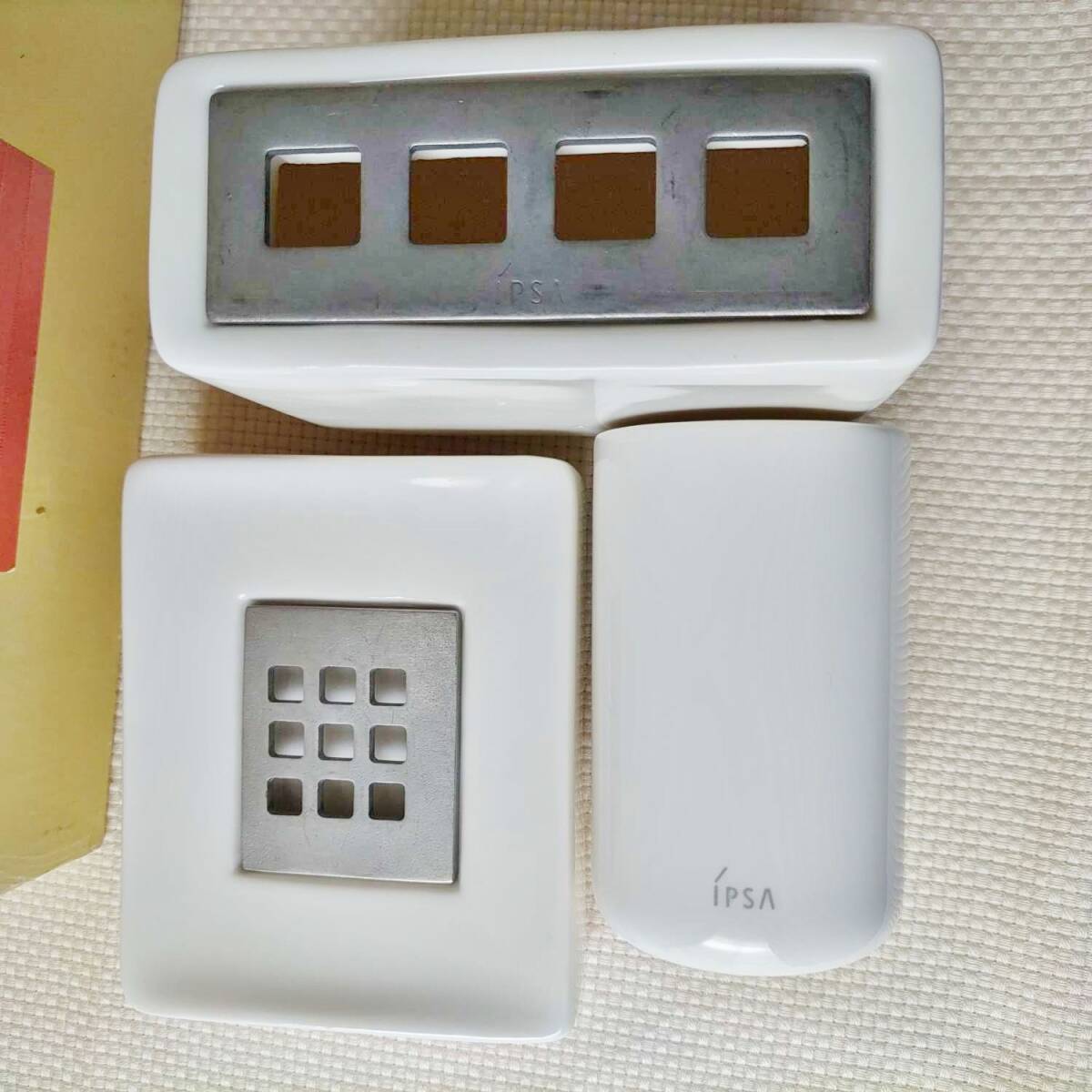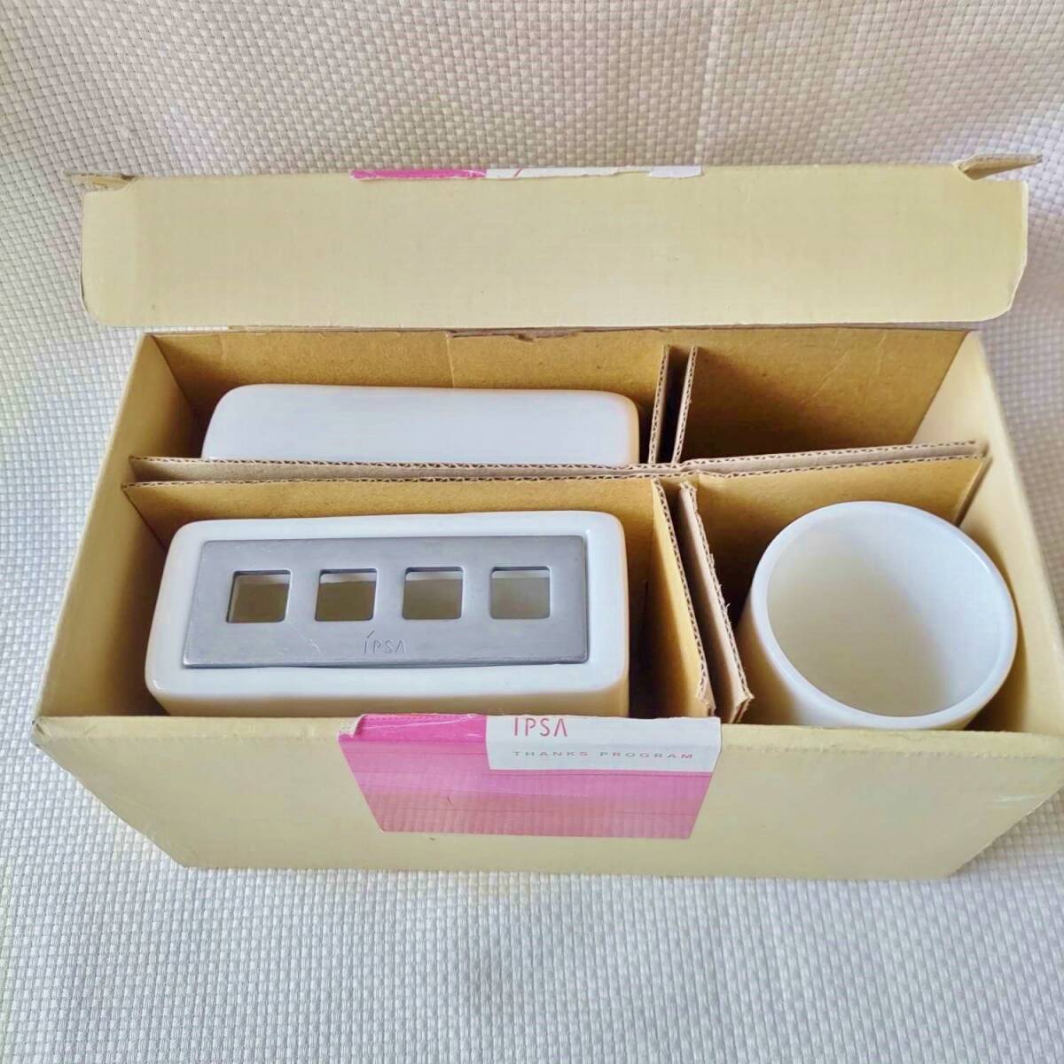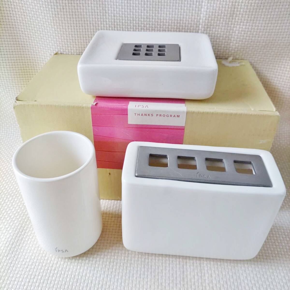 IPSA オリジナル パウダールーム アクセサリー ソープディッシュ 歯ブラシ スタンド 陶器 コップ セット/イプサ トレイ 洗面 カップ 非売品