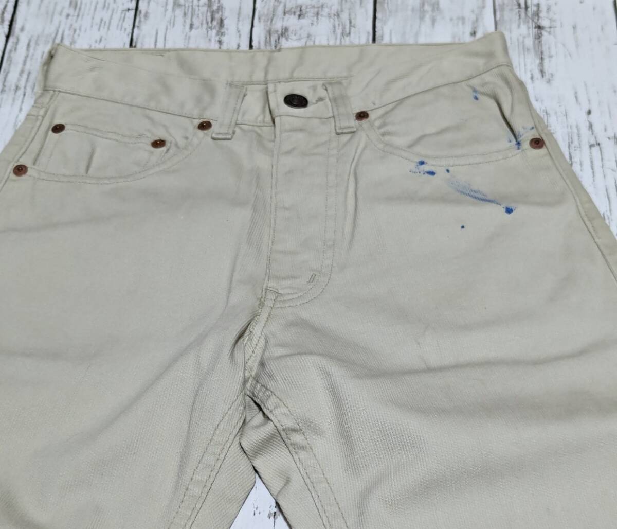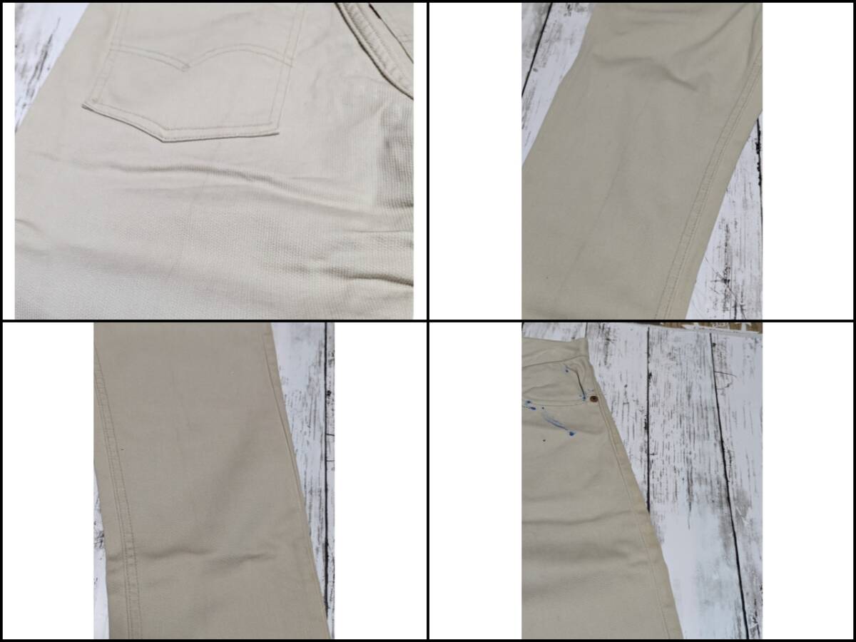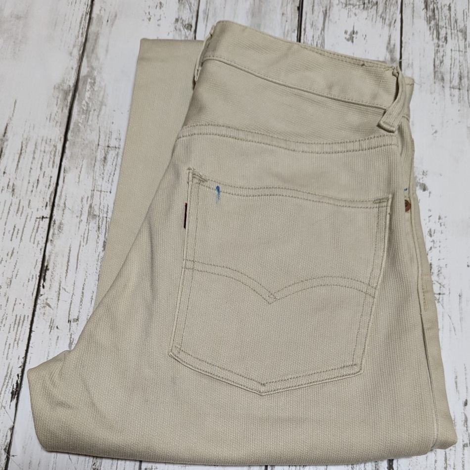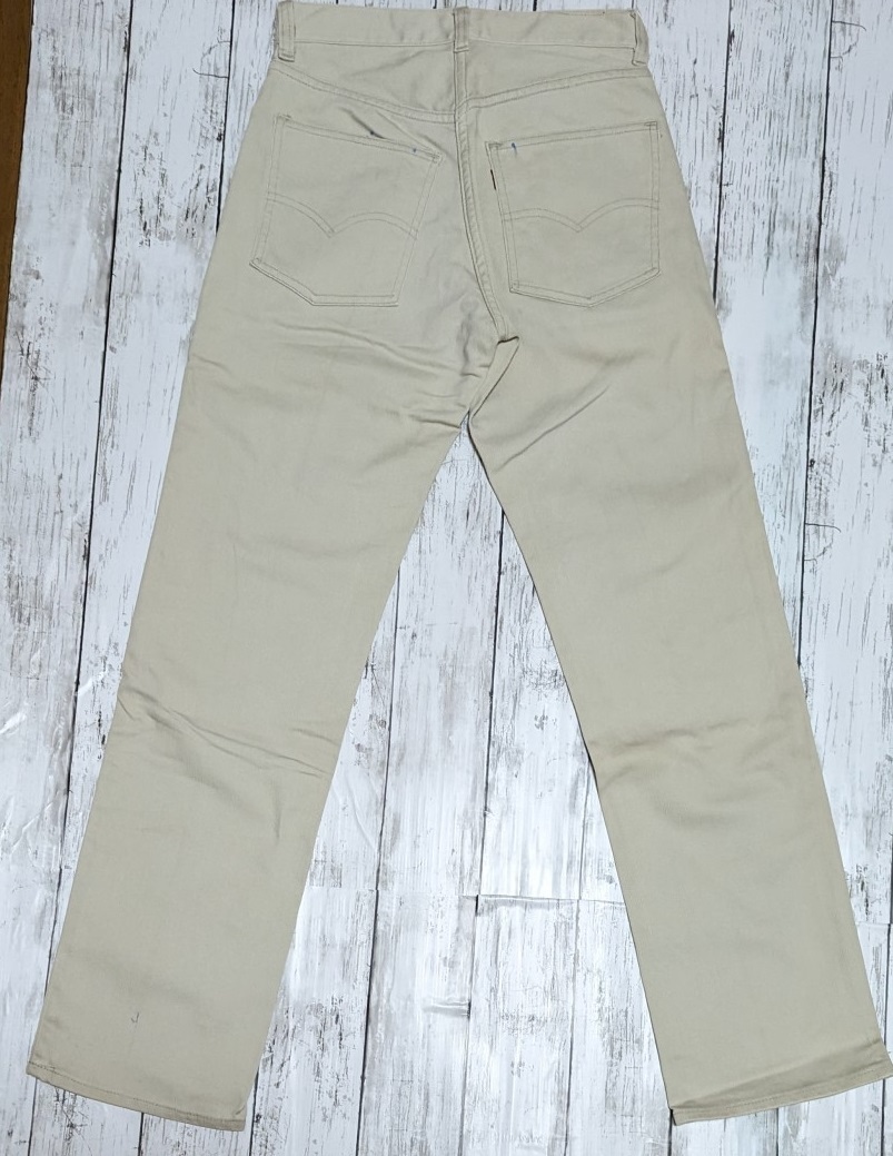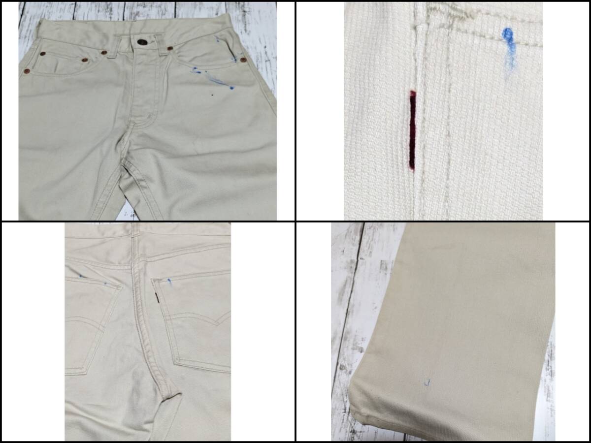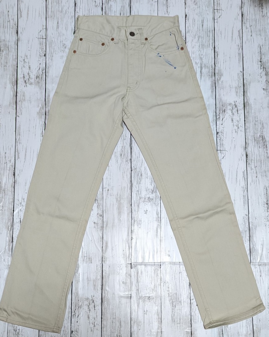 1960s~LEVI'S CALIFORNIANS ホワイトリーバイス コットンパンツです。 911Bのボーイズ版になります。 パッチやタグは有りませんが以前所有していた同モデルと同様の特徴の為このモデルと推定しております。 モデル的にBIG Eの赤タブのはずですがタブは切り取られていて確認できません。 【ブランド】 Levi’s (リーバイス) 【モデル】 921B CALIFORNIANS 平置き寸法 ウェスト約68cm 股上約26cm 股下約75cm 裾幅約19.cm ワタリ幅約26cm ■状態について■ 青色のペンキがはねたような汚れが数か所あります。 保管時の折り目に汚れが有ります。 検索用 501 646 606 levis |