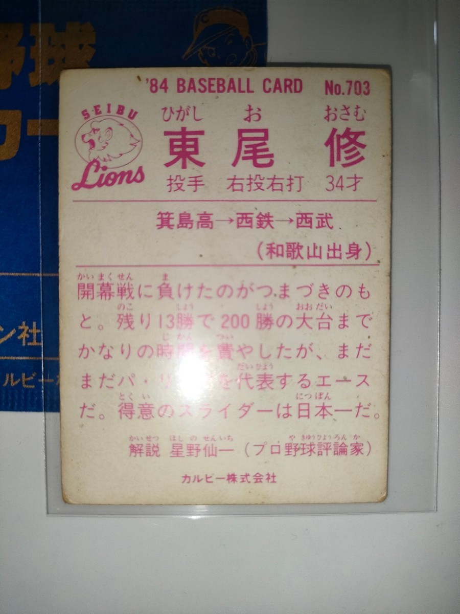 東尾修 84 カルビープロ野球チップス No.703 西武ライオンズ