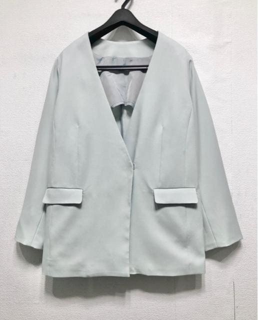 新品☆4Lミント系♪伸び伸び♪ロング丈ノーカラージャケット♪お仕事フォーマル☆b151