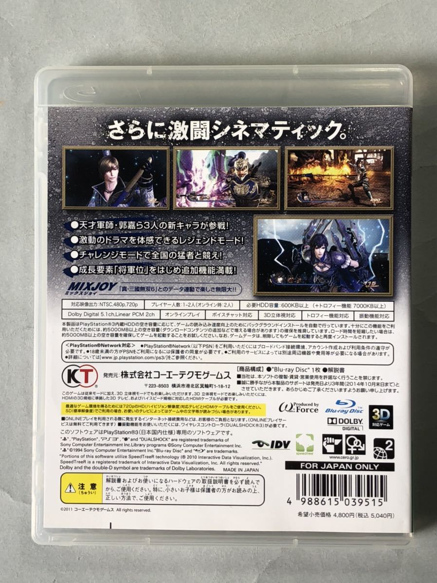 PS3フト 真・三國無双6 猛将伝「さらに激闘シネマティック。」コーエーテクモゲームスです。ケースに擦れ、細かな傷、線傷、線状や点状のへこみ跡があります。ディスクのデータ読み取り面に細かな傷や微細な傷が少しだけあります。起動、動作確認済みです。写真のモノが全てです。新品をお探しの方や神経質な方の入札はご遠慮下さい。ノークレーム・ノーリターンで、お願いします。入札よろしくお願いいたします。 C05-337-021206