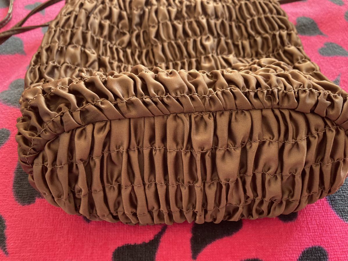 クシュクシュとしたディティールと小さめのサイズがアクセントになるミニバッグです
