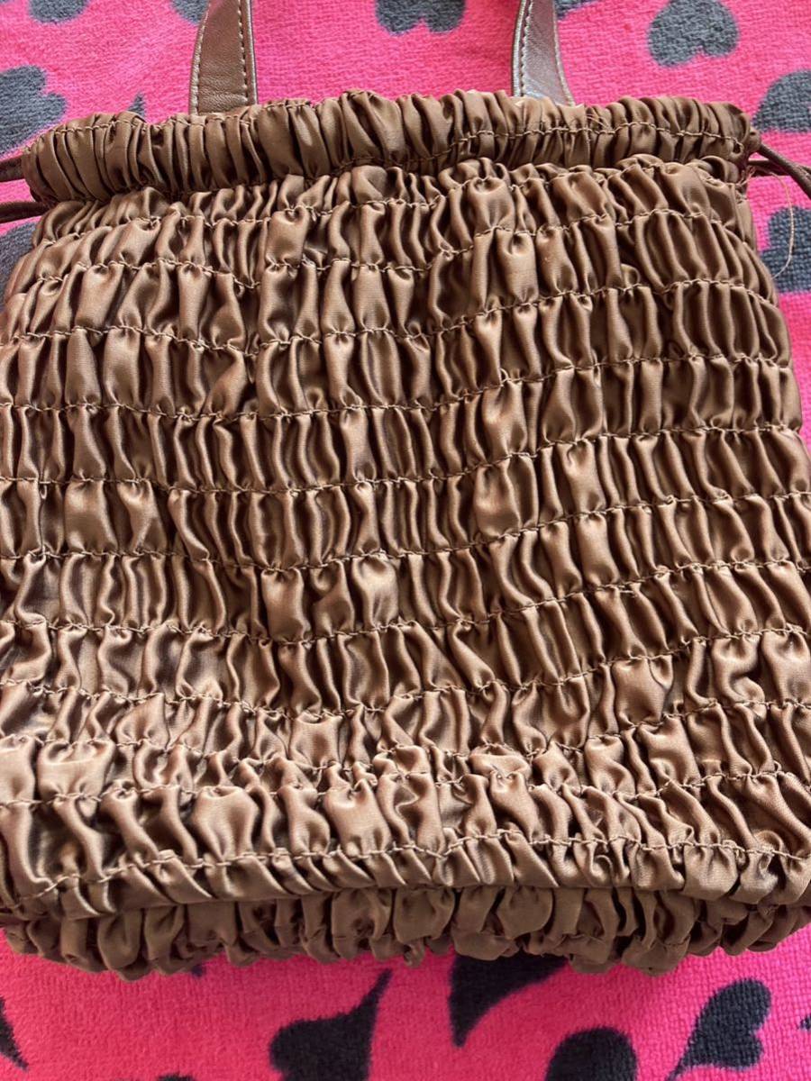 表面のシャーリング加工が特徴の巾着バッグ