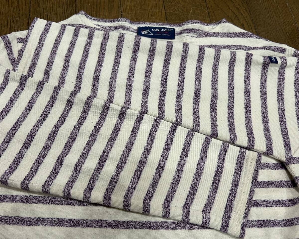 *セントジェームス SAINT JAMES カスレ ボーダー バスクシャツ ボートネック カットソー フランス製 T3        BJBD.B
