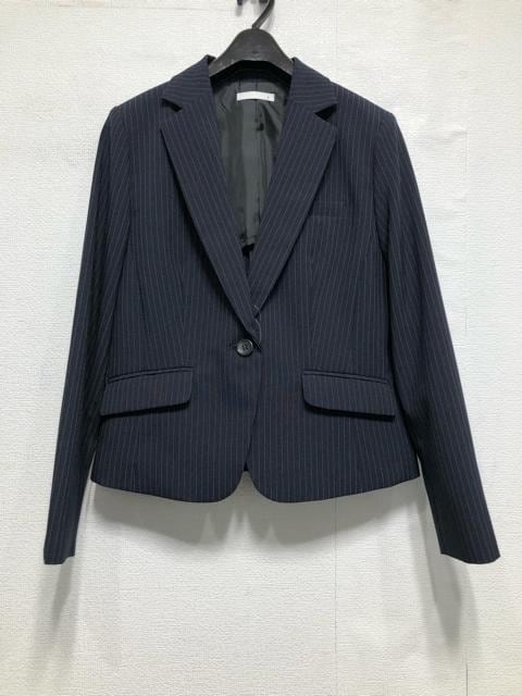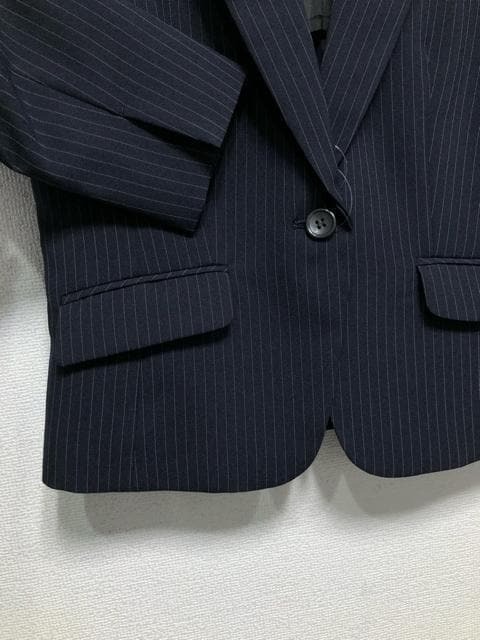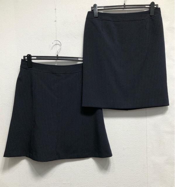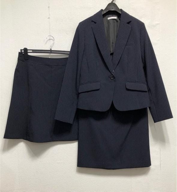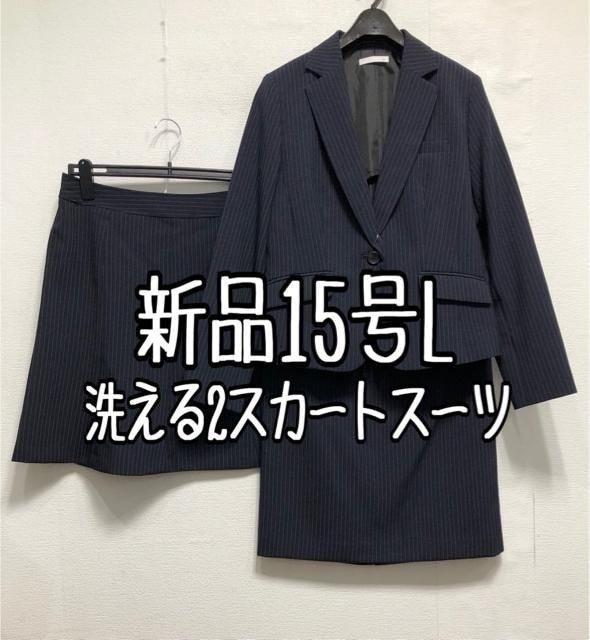 新品☆15号L♪紺系ストライプ♪スカート2種付きスーツ3点セット♪お仕事☆r439