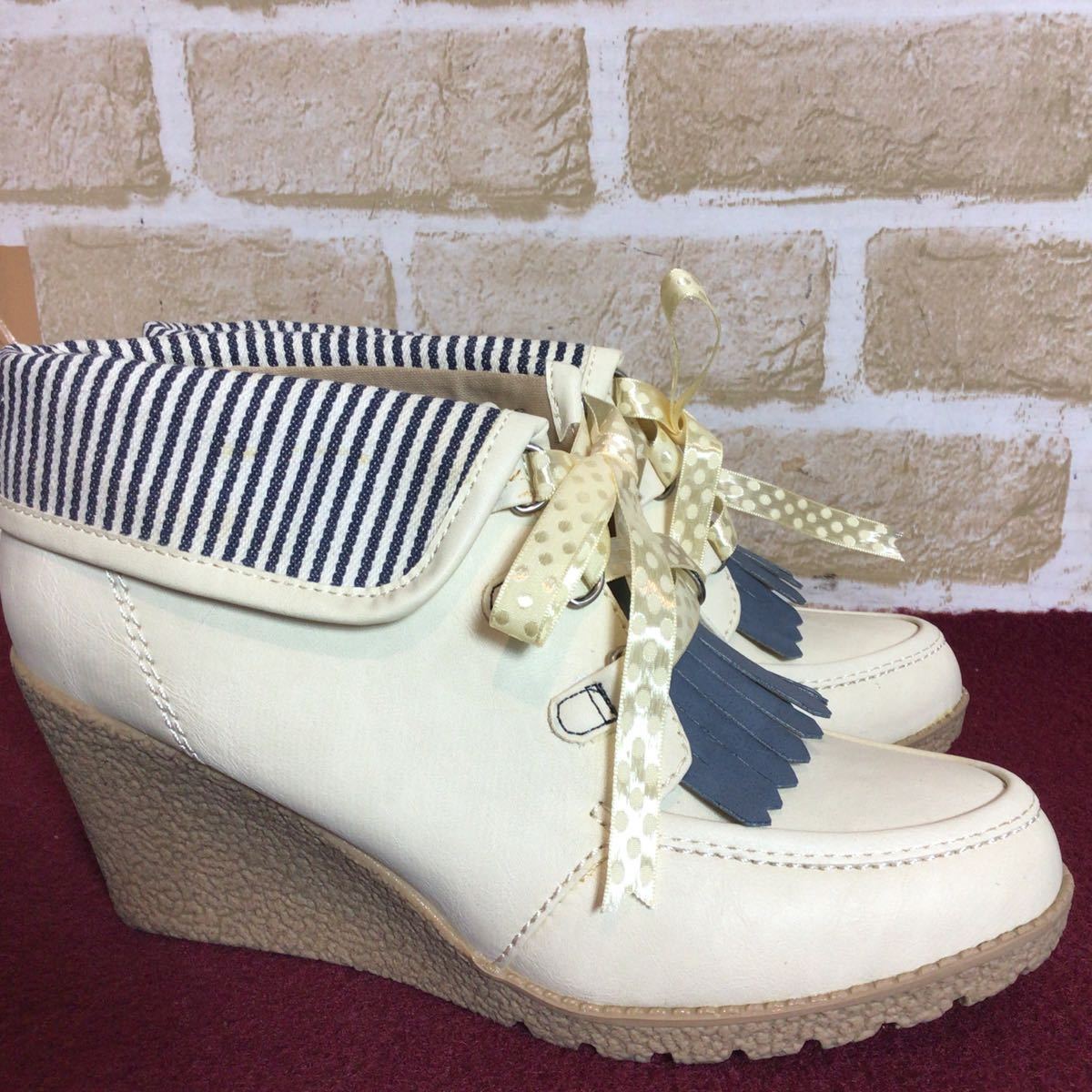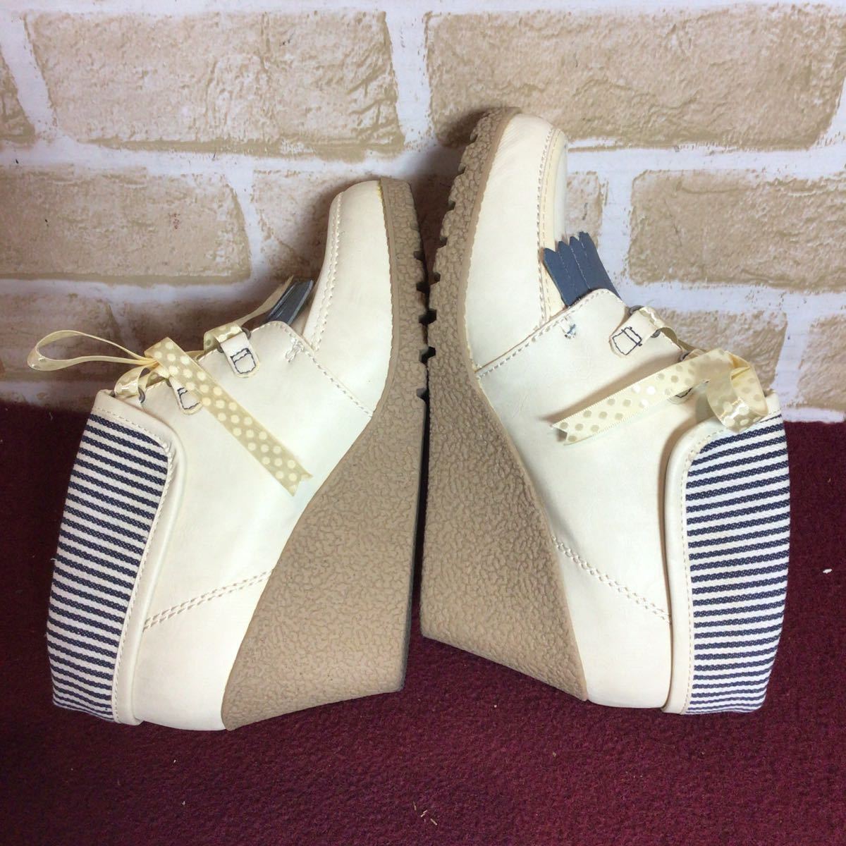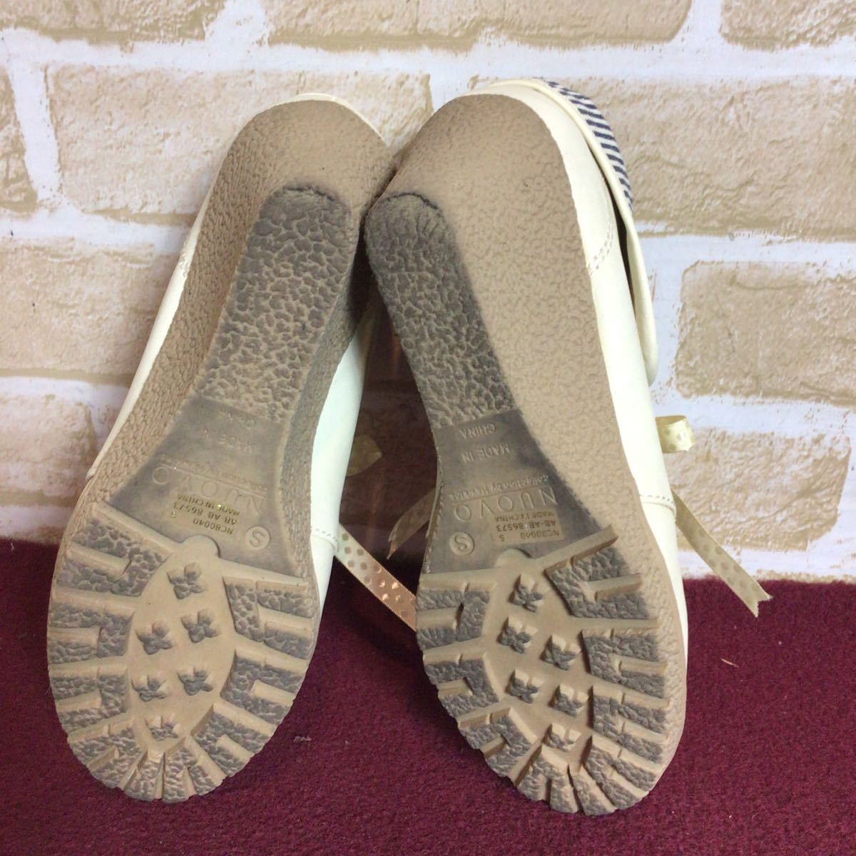 【売り切り!送料無料!】A-328 NUOVO!ウェッジソールパンプス!S 22.5cm位!アイボリー!ウェッジソール!安定感あり!おしゃれ!中古!