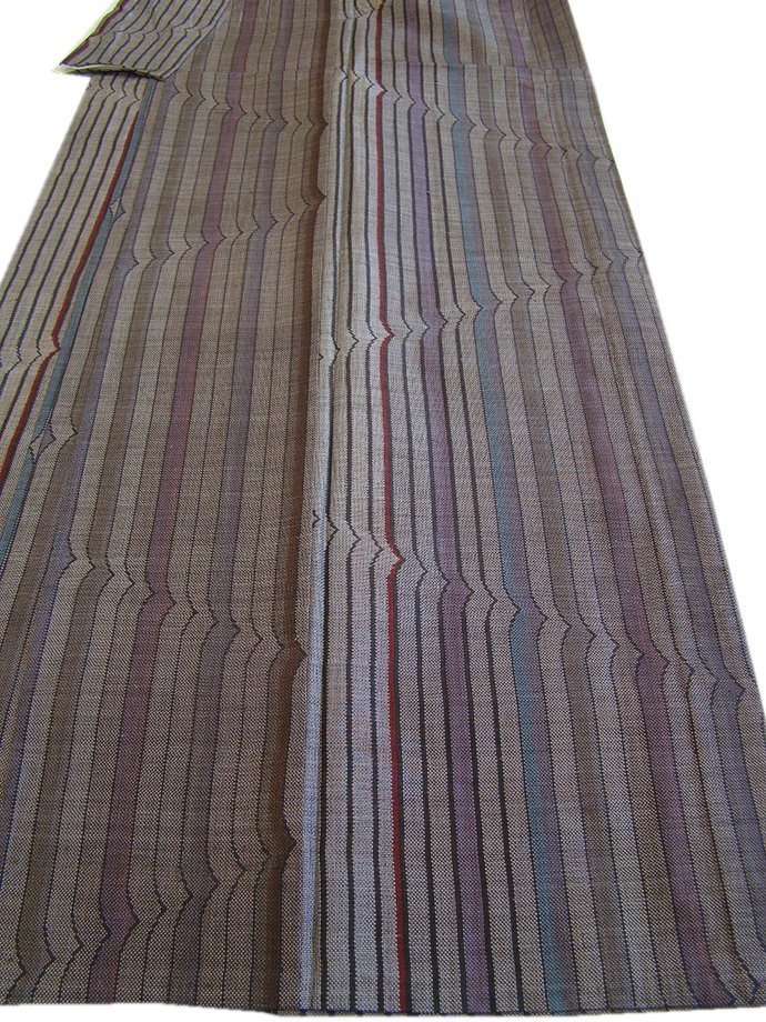 ちょっと一言 | ハリやシャリ感に満ちた独特の素材感が愉しい夏の暑さを忘れさせる様な 単衣仕立ての大変極め細やかな本場大島紬(径横絣九マルキ)です。 独特のさらりとした肌触りが軽やかで涼やかな空気を纏わせるお洒落な逸品です。 肌にべたつかず心地よい時間をお過ごし頂ける事と思います。 |