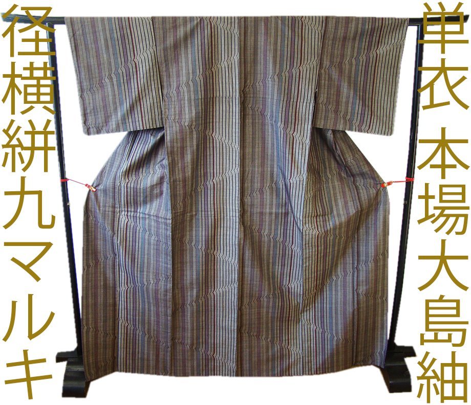 ★美品★単衣!独特のシャリ感に身を纏う極上の着心地!! 人気の精緻な本場大島紬(径横絣九マルキ) 正絹 I530★ | |